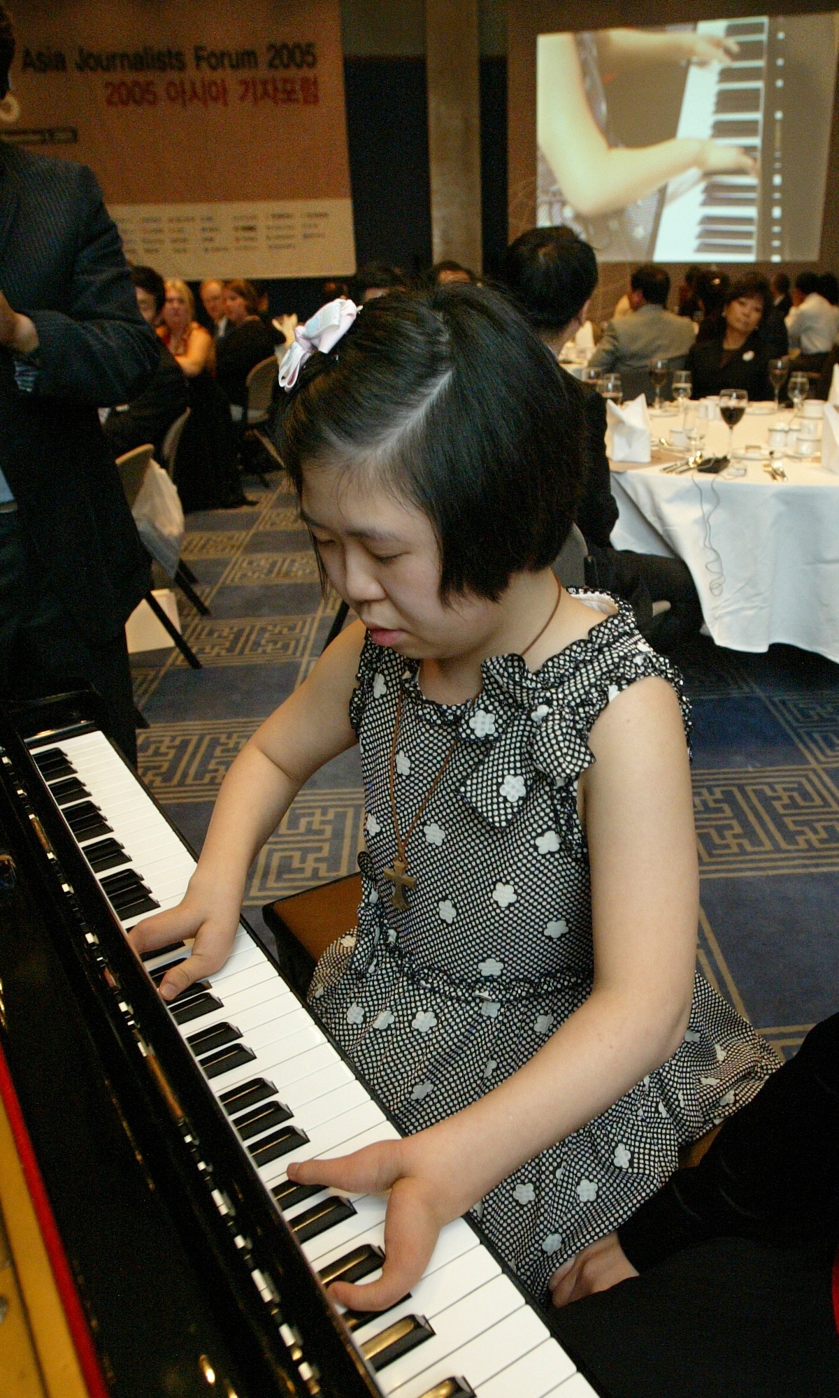 31일 오후 서울 프레스센터에서 열린 '2005 아시아 기자포럼' 개막식 행사에서 네 손가락의 피아니스트'로 유명한 이희아(22)씨가 쇼팽의 '즉흥환상곡'을 연주하고 있다.