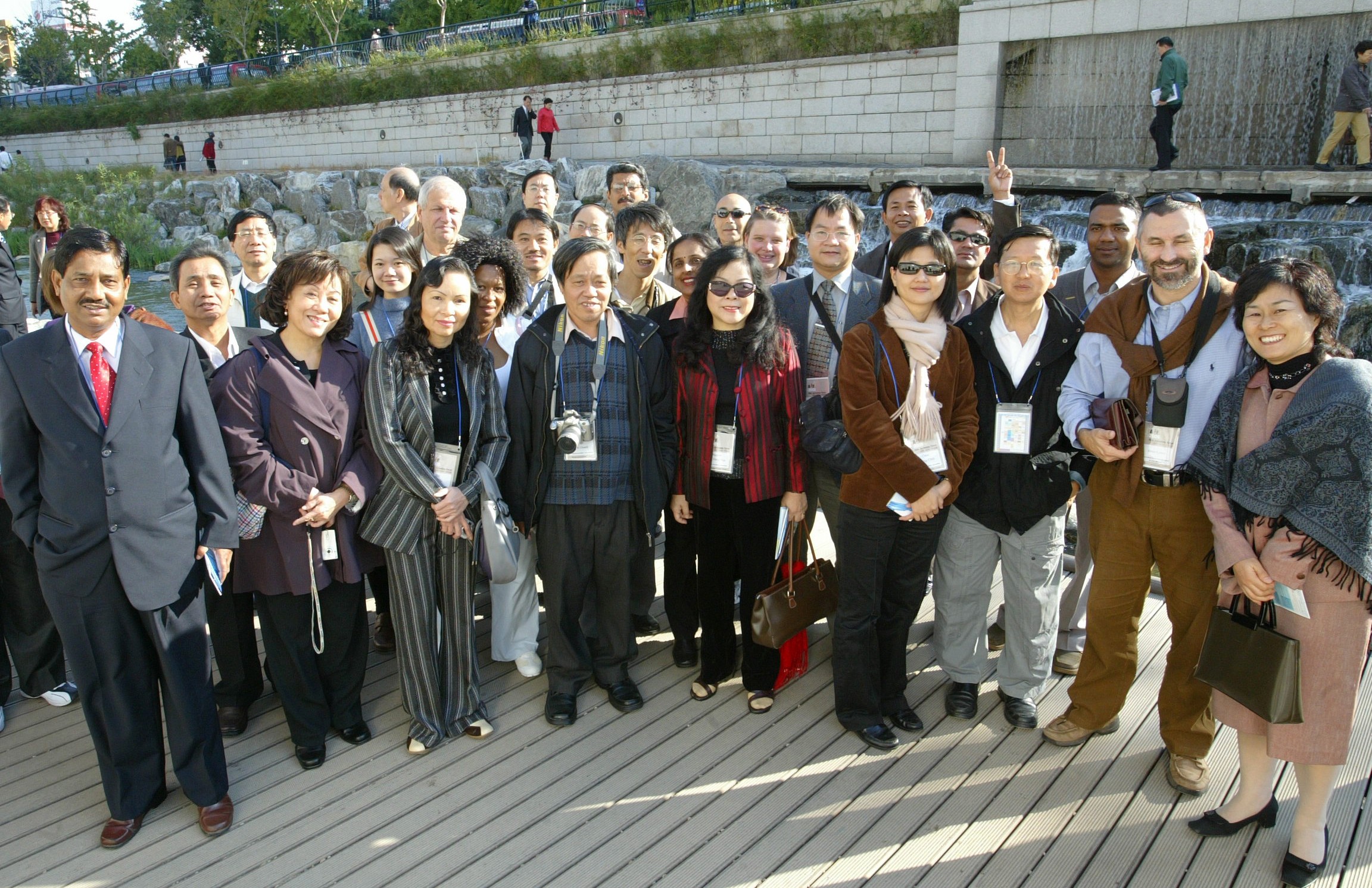 '2005 아시아 기자포럼'이 개막된 31일 오후 서울 청계천 현장을 취재나온 참가국 기자들이 포즈를 취하고 있다.