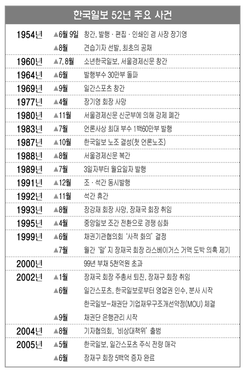 9일로 창사 52주년을 맞은 한국일보는 1954년 창간 이래 90년대 초까지 신문업계에서 항상 선두그룹에 속했다.
