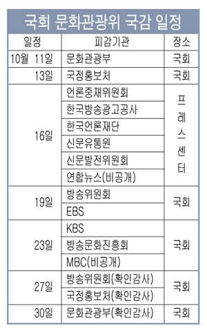 국정감사 막바지인 27일에는 방송위원회와 국정홍보처, 마지막 날인 30일에는 문화관광부 등에 대한 확인감사가 각각 실시된다.