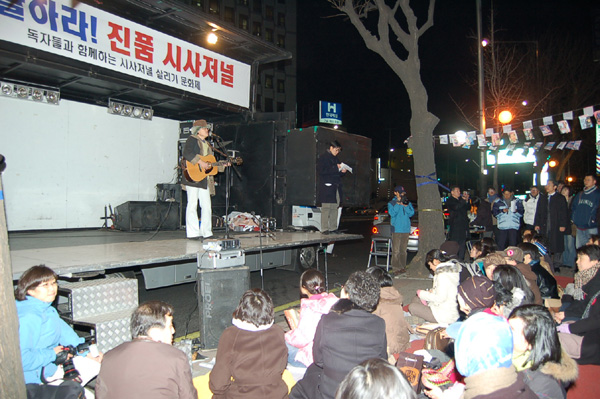 이날 행사는 시민단체의 촛불시위 사회자로 유명한 최광기씨가 진행을 맡았으며 가수 전인권, 인디밴드 허클베리 핀, 신세대 트로트 댄스그룹 VASIA, 민중가수 손병휘 씨, 살풀이 전수자 김경숙 선생의 살풀이 공연이 이어졌다.