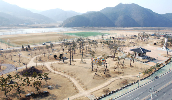 ▲ 경남 합천군 황강변에 조성된 ‘새천년생명의숲’. 최근 전두환 전 대통령의 아호를 딴 ‘일해공원’으로의 명칭변경을 놓고 논란이 일고 있다.(사진=경남도민일보) |