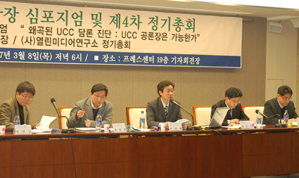8일 오후 서울 프레스센터 19층 기자회견장에서 언론광장(대표 김중배) 창립 3주년 기념 심포지엄에서 경희사이버대학교 민경배 교수(NGO학)는 정치권과 언론이 왜곡된 UCC 담론을 형성했다고 지적하며 “이용자들의 자발적 참여로 생산되는 UCC 본래의 의미는 어디서도 찾아볼 수 없고 ‘사용자생산콘텐츠(UCC)’를 말하면서 정작 가장 중요한 ‘사용자’는 사라지고 말았다”고 주장했다.
