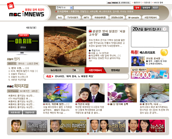 오는 9일로 예정된 아이엠뉴스 개편의 핵심은 ‘20년뉴스’의 신설로 지난 1987년 2월3일부터 현재까지 총 7천3백일 분량의 뉴스데스크를 25만여개의 동영상으로 디지털 데이터베이스(DB)화 한 것이다.