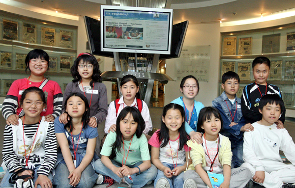 ▲ 신문박물관 ‘30만명째 관람객’ 행운을 잡은 종로종합사회복지관 단체관람 어린이들.(사진제공=동아일보) |