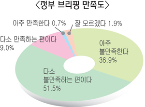 정부가 2003년 도입한 개방형브리핑제의 핵심 가운데 하나인 정부 각 부처의 브리핑도 상당한 불만을 사고 있는 것으로 나타났다.