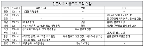 이 때문에 기자들의 블로그 참여가 필요하고, 이를 위해선 뉴스조직과 경영진이 기자 블로그에 대한 의식전환이 필요하다는 게 중론이다.
