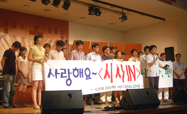 ▲ 지난 11일 시사IN 발대식에서 독자들이 ‘사랑해요 시사IN’ 플랜카드를 들고 있다. |