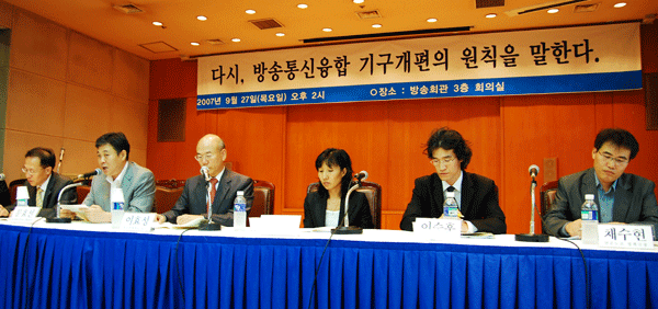 언론개혁시민연대(이하 언론연대)는 27일 오후 서울 양천구 목동 방송회관 3층에서 ‘다시, 방송통신융합 기구개편의 원칙을 말한다’라는 제목의 토론회를 개최했다. 토론회에 참석한 토론자들은 방송통신융합 기구개편안은 진흥 기능을 합의제 위원회에서 기능케 하는 것이 가장 적합하다며 한 목소리로 잠정합의안을 비판했다.