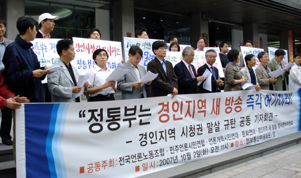 민언련 김서중 공동대표는 “정통부가 제대로 기능을 하고 있는지 의문”이라며 “정통부는 기술적인 문제에 불과한 허가권한을 갖고 지역사회의 노력을 물거품으로 만들려 하는 작업을 즉시 중단해야 한다”고 요구했다.