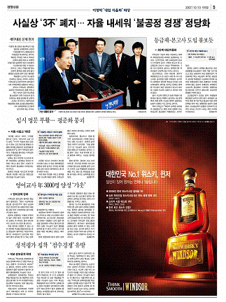 6면 <이명박 “교육 3불정책 중 2불 폐지”>라는 기사를 통해 이 후보의 교육정책 발표에 대해 전달하고 있으나, 기사의 내용은 이 후보의 발표내용을 그대로 인용한 수준이다. 또한 동일면 두 번째 기사에서는 서강대 입학처장과 교총, 전교조의 반응을 전달할 뿐이다. 자체적으로 평가한 기사는 존재하지 않는다. 대체 후보자 정책에 대한 평가나 검증을 하려는 의지는 있는지 의문이다. 검증 능력이 없다면 외부에서라도 검증단을 꾸려 대통령 후보에 대한 정책 검증에 나서야 할 것이다.