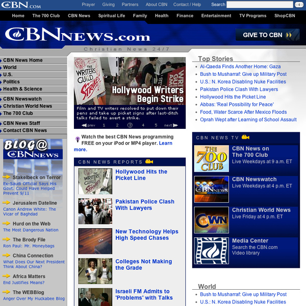 ▲ 외국의 전문 채널은 보도기능을 자유롭게 선택하고 있다. 사진은 미국의 대표적 기독교채널 CBN의 홈페이지 첫 화면. |