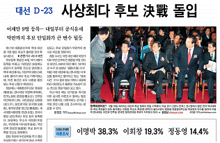 25일 한나라당 선언 → 26일 조선 2건, 중앙 1건, 동아 기사 없음