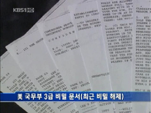 △ KBS가 보도한 미 국무부 3급 비밀문서. 이 문서에는 최시중 후보가 갤럽회장이던 1997년 대선 당시 여론조사 결과를 보스워스 미 대사에게 알려줬다고 나와있다. |