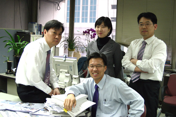 ▲ 왼쪽부터 시계방향으로 윤석제 차장, 장윤미 기자, 김정훈 기자, 김진오 정치부장. |