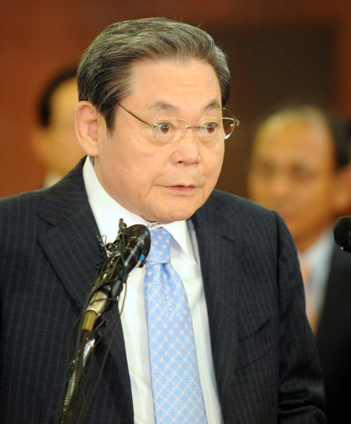 | ▲ 이건희 삼성그룹 회장이 22일 오전 삼성그룹 본관 지하1층 국제회의실에서 삼성그룹 경영쇄신안을 발표하며 그룹 일선에서 물러나기로 했다고 발표하고 있다. ⓒ뉴시스 | ||