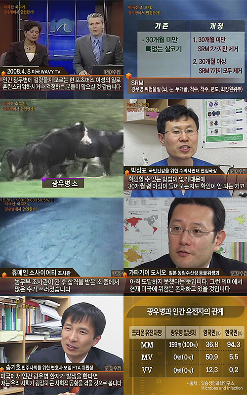 ▲ MBC가 29일 방송 보도한 'PD수첩 - 긴급취재! 미국산 쇠고기, 과연 광우병에서 안전한가?'편의 방송화면 갈무리. |