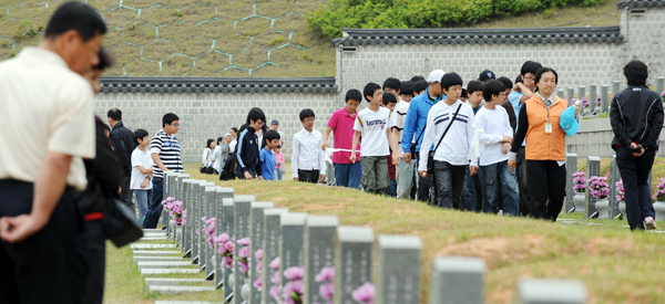 5.18 광주민주화운동 28주년을 맞아 광주 북구 운정동 국립 5·18 민주묘지에는 전국 각지에서 참배객들의 발길이 이어지고 있다. (사진 제공 광주 매일신문 김영근 기자)