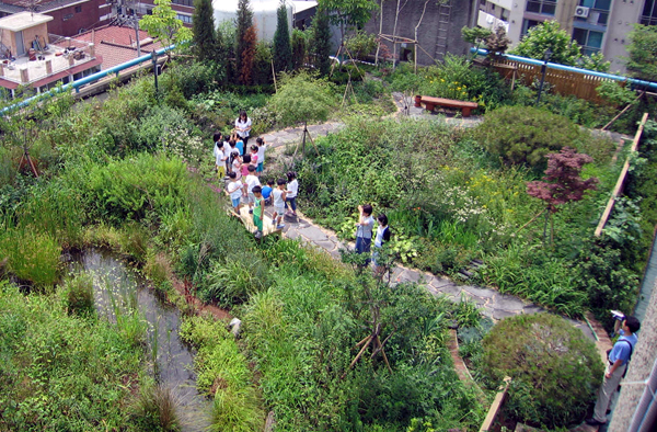 한겨레 시설관리팀 채규조 팀장은 “옥상 연못에 피라미나 우렁이가 살 정도로 청정 환경을 자랑하고 있다”면서 “직원들의 휴식처는 물론이고 유치원생이나 초등학생들의 환경교육의 장으로 활용되고 있다”고 말했다.