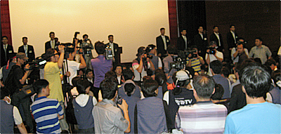주총 사회자인 채문석 경영기획실 팀장은 이날 오전 9시 용역업체 직원 2백여명이 단상을 에워싼 상태에서 “주주 참여 57.25%로 총회가 성립됐음을 선언한다”며 개회를 선포했다.