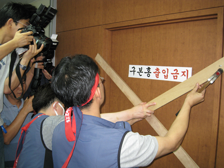 노조는 구본홍 사장이 출근을 하지 않자 사장실 앞을 점거하고 출입문을 못질해 봉쇄했다. 노조 집행부는 “구 사장이 출근 하더라도 사장실엔 들어오지 못하도록 할 것”이라고 말했다.