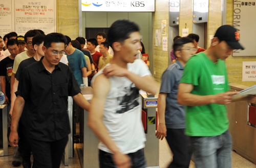 | ▲ 임무 마친 사복경찰들 / 정연주 KBS 사장에 대한 해임제청안이 통과된 8일 오후 서울 여의도 KBS 본관 3층 회의장에 배치됐던 사복경찰들이 로비로 나오고 있다. ⓒ뉴시스 | ||