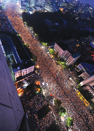 ▲ 지난 6월 초 쇠고기 졸속협상에 분노한 시민들이 참여한 대규모 촛불집회가 서울시 광화문 일대에서 열렸다. (뉴시스) |
