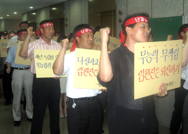 언론계 일각에서 제기했던 문체부의 지능화된 임원 퇴진 시나리오(재원 압박→직원 불안감 조성→노조 투쟁 유도→임원 사퇴)의 마지막 장이 쓰여지고 있는 셈이다. 노조는 재단이 두 가지 위기, 즉 재원위기와 통합위기에 내몰렸다며 “더 이상 임원이 우리를 지켜줄 수 없다는 자결이 임원 퇴진투쟁의 본질”이라고 밝혔다.