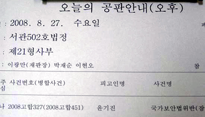 ▲ 27일, 서울중앙지법 502호 법정에서 윤기진 범청학련 의장의 선고공판이 진행됐다. [사진-통일뉴스 고성진 기자] |