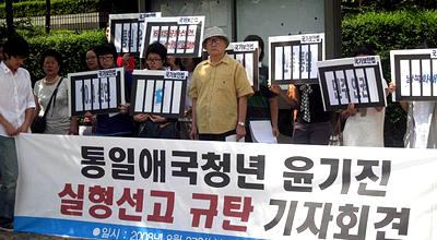 국가보안법 위반 혐의로 9년간 수배생활을 해 오다 지난 2월 구속기소된 윤기진 조국통일범민족청년학생연합(범청학련) 남측본부 의장에게 실형이 선고됐다.
