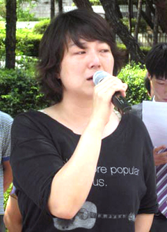 ▲ 윤 의장의 아내인 황선 민주노동당 자주평화통일위원장은 남편의 실형선고에 눈물을 흘렸다. [사진-통일뉴스 고성진 기자] |