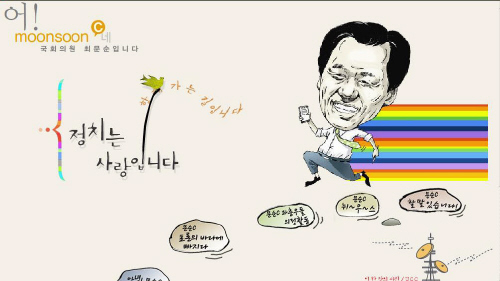 | ▲ 민주당 최문순 의원의 홈페이지 '문순씨네'(www.moonsoonc.net)의 초기화면. | ||