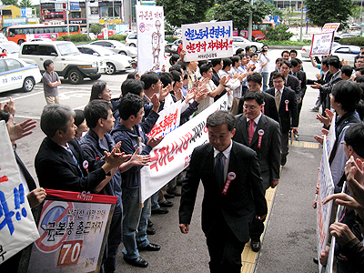 ▲ 구본홍 사장의 고소로 경찰 조사를 받게 된 YTN 조합원 11명이 25일 오후 2시 남대문경찰서로 들어서고 있다. |