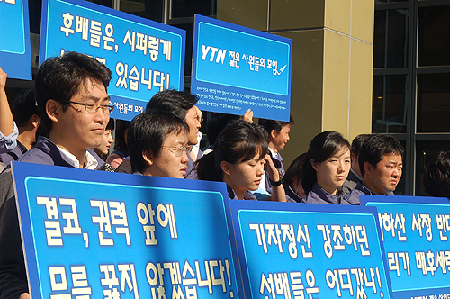 신호 기자(뉴스5팀)는 “구본홍씨는 이미 YTN 사장 자격을 상실했다”면서 “지금도 미래에도 절대 YTN 사장이 될 수 없다. 기자 정신을 강조하던 선배들도 이제 그만 침묵을 깨고 후배들의 낙하산 반대 투쟁에 함께 해 달라”고 호소했다.