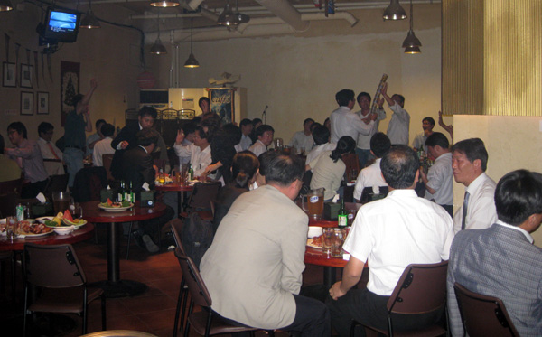 ▲ 경향신문 기자들이 6일 회사 인근 한 맥주집에서 편집국 워크숍 뒤풀이를 하고 있다. 뒤풀이는 다음날 새벽까지 이어졌다. |