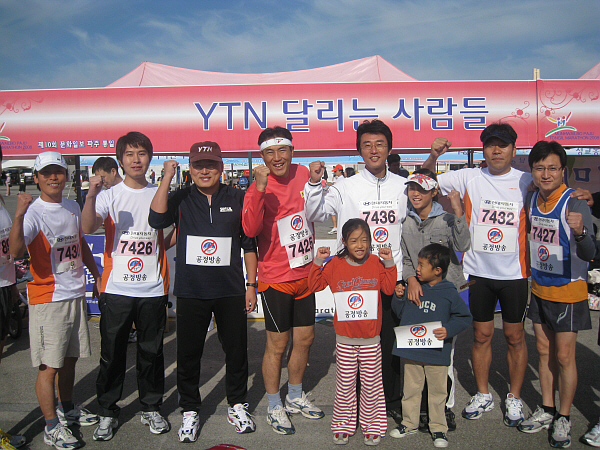 ‘YTN 달리는 사람들(회장 조승호)’ 회원 30여명은 이날 낙하산 사장 반대 그림과 공정방송의 문구가 적힌 스티커를 가슴과 등에 붙이고 마라톤 대회에 출전, YTN 노조의 ‘낙하산 사장 저지 투쟁’을 알렸다.