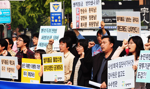 ▲ 참여연대 회원 30여명이 16일 오전 서울 청운동 동사무소 앞에서 '쌀직불금 부당수령 공직자 규탄 및 공개질의 기자회견'을 열고 수령과정의 불법행위를 밝혀야 한다고 주장하고 있다. (사진=뉴시스) |