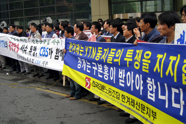 이들은 또 이달 초부터 연쇄 성명을 내어 ‘징계 철회’와 ‘구본홍 사장 사퇴’를 촉구했다. 특히 지난해 ‘자본으로부터 언론 독립’을 외치며 총파업에 돌입한 바 있는 시사인 노조(위원장 오윤현)는 지난 17일 “YTN 노조의 싸움을 남 일로 여기지 않는다. 시사저널 사직 후 시사인 창간 과정을 통해 올바른 언론을 열망하는 국민의 기대가 얼마나 큰지 몸소 체험했다”며 “이명박 정부는 전국의 언론 노동자들을 정권의 적으로 만들고 싶지 않다면 YTN 문제를 상식적으로 해결하라”고 요구했다.