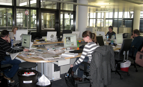 ▲ 독일 뒤셀도르프 지역신문 ‘라이니쉐 포스트’는 온라인 뉴스룸과 종이신문 뉴스룸이 공존하고 있다. 사진은 온라인 뉴스룸 전경. |
