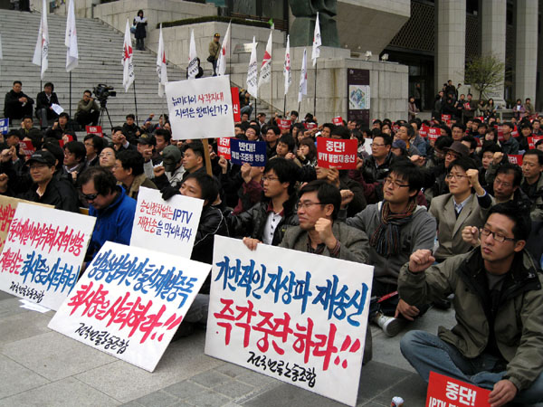같은 날 전국언론노동조합(위원장 최상재)도 세종문화회관 앞에서 집회를 갖고 “방송법 시행령 개악과 IPTV 불법 재전송을 즉각 중단하라”고 촉구했다.