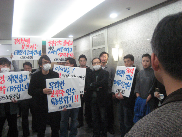 CBS(사장 이정식)가 25일 이사회를 열어 실권주 인수를 가결했으나 CBS 노조(위원장 나이영)가 이사회장 앞에서 피켓시위를 하는 등 반발하고 있다.