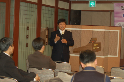 | ▲ 최진봉 미국 텍사스주립대 교수(사진 가운데 마이크 든 사람)가 24일 언론노조 창립 20주년 기념 특강에서 미국 오바마 대통령 당선자의 언론정책에 대해 설명하고 있다. | ||