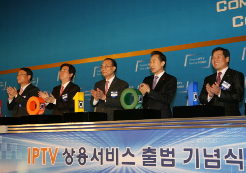이명박 대통령은 12일 서울 삼성동 코엑스에서 열린 ‘IPTV 상용서비스 출범 기념식’ 축사에서 “IPTV 상용서비스의 출범을 계기로 우리 방송.통신 시장이 시대의 흐름을 선도하고 경쟁과 변화에 신속하게 대응할 수 있도록 법과 제도를 과감하게 고쳐나갈 것"이라고 말했다.