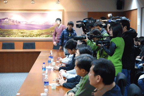 | ▲ 16일 오전 국회를 방문한 에이든 화이트 IFJ 사무총장 일행이 민주당 의원들을 만나 YTN 사태 해결책을 찾기위한 간담회를 했다. | ||
