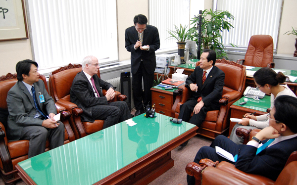 ▲ IFJ 예비실사단은 16일 오전 국회를 방문해 민주당 정세균 대표, 전병헌 문광위 간사, 최문순 문광위원 등과 YTN 사태 등에 대한 간담회를 가졌다. |