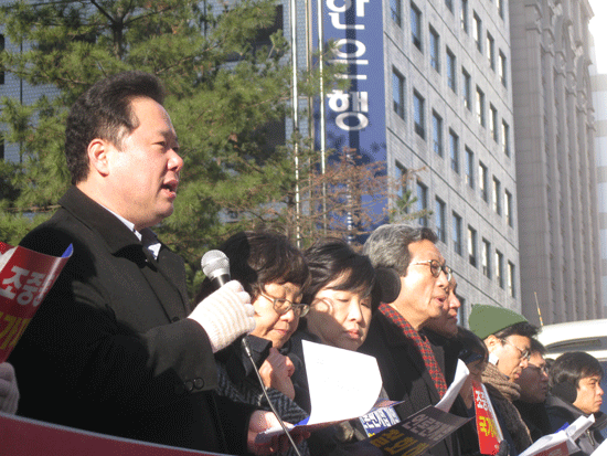 ▲ 미디어행동은 22일 서울 여의도 한나라당사 앞에서 '언론장악 7대 악법' 저지 기자회견을 열고 "한나라당은 7대 악법을 즉각 폐기하고 독재 장기집권의 꿈을 버려라"고 요구했다