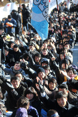 | ▲ 26일 오후 서울 여의도 국민은행 앞에서 언론장악 7대 악법저지 전국언론노조 총파업 출정대회가 열리고 있다.(사진=뉴시스) | ||