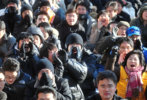 | ▲ 26일 오후 서울 여의도 국민은행 앞에서 언론장악 7대 악법저지 전국언론노조 총파업 출정대회가 열리고 있다. (사진=뉴시스) | ||