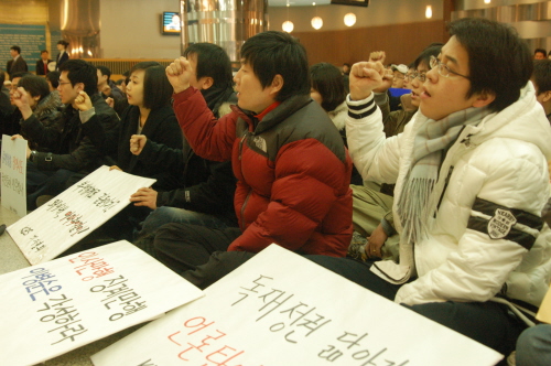 막내 기수로서 발언에 나선 양성모 기자는 “얼마 전 이병순 사장은 ‘회사가 어려워도 후배들에게 앵벌이 시키지 않겠다’고 했다. 그런데 그런 사장이 후배들에게 양심을 내놓으라고 하고있다”며 “우리의 함성과 구호 끝에 승리가 있을지 절망이 있을지 두렵다. 하지만 나는 약하지만 우리는 강하다”고 했다.