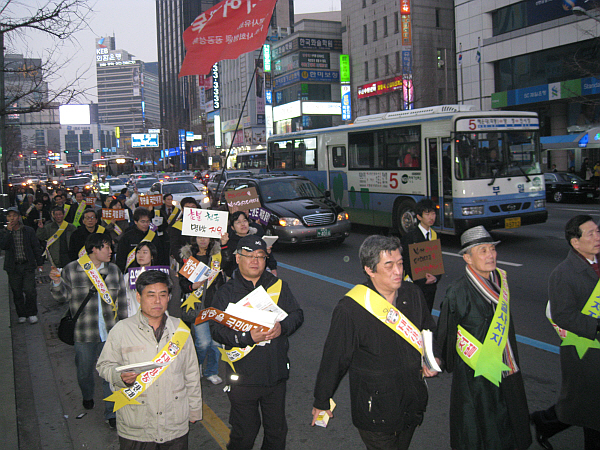 | ▲ 미디어행동이 7일 오후 6시 부산지역 시민들과 태화로 일원을 돌며 용산 참사와 MB악법 규탄을 위한 거리 행진을 벌이고 있다. | ||